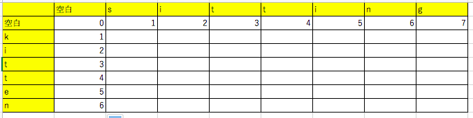 レーベンシュタイン距離を考えるときは、こんな感じの表を作る。